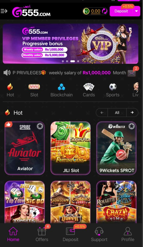 In the final stages, once again looking at the features of the G555 Game. There are more than a hundred casino games and more than half a dozen bonuses and rewards. An excellent and helpful customer service, and the most secure and reliable transaction methods, Easy paisa and Jazz cash. There are also from where players can deposit from 300 to 100000 at a time and can take withdrawal from 500 to 50000.
